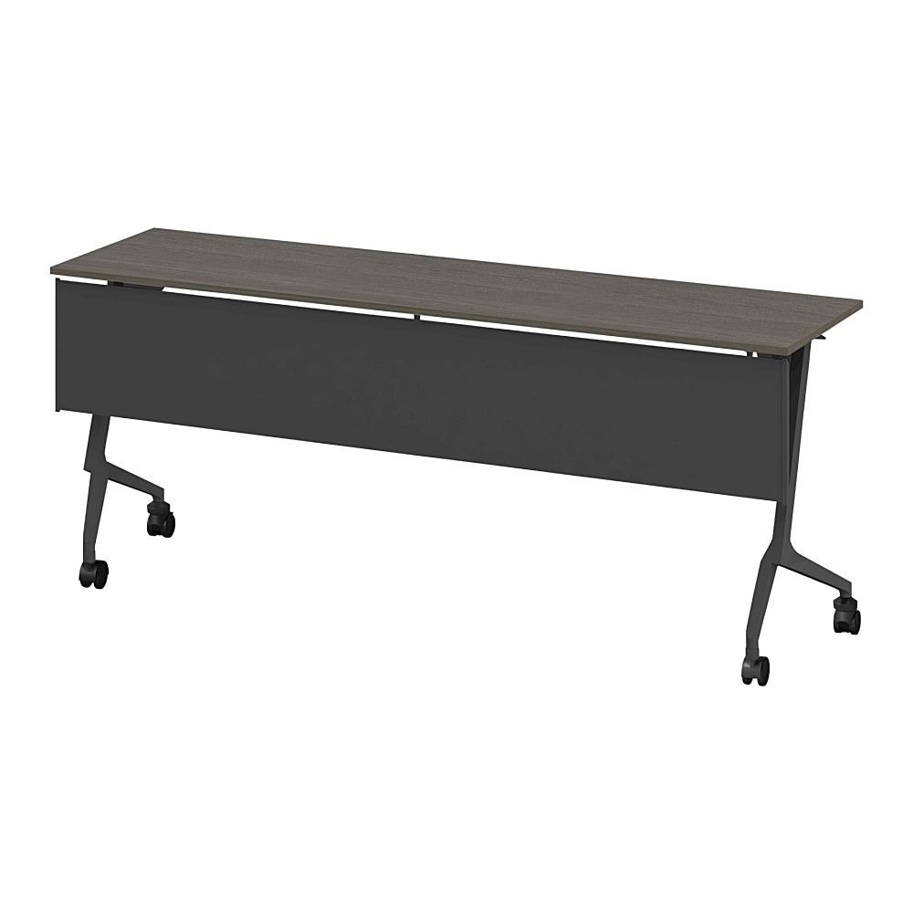 折りたたみテーブル スレント 樹脂幕板付 棚付 リフトロックキャスター W1800×D450 [T1×81/アッシュドオークD]