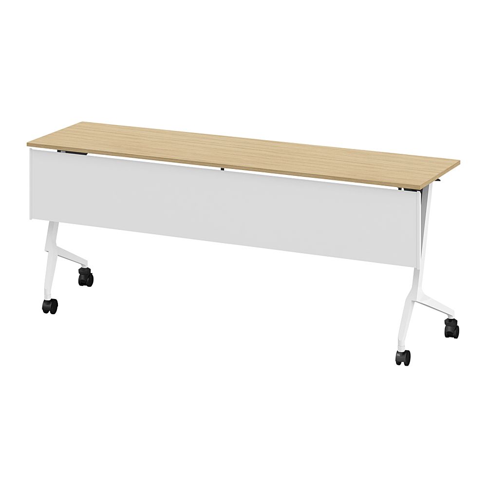 折りたたみテーブル スレント 樹脂幕板付 棚付 リフトロックキャスター W1800×D450 [W9×92/ホワイトオーク]