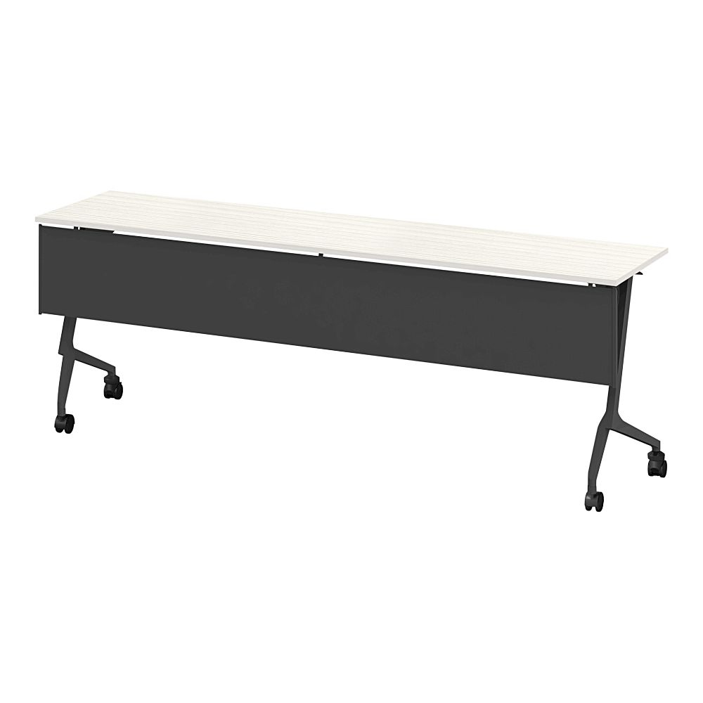 折りたたみテーブル スレント 樹脂幕板付 棚付 リフトロックキャスター W2100×D450 [T1×61/アッシュドパイン]