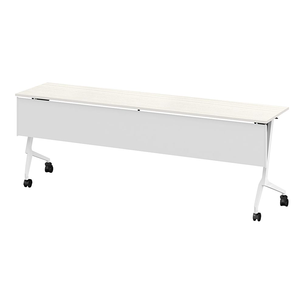 折りたたみテーブル スレント 樹脂幕板付 棚付 リフトロックキャスター W2100×D450 [W9×61/アッシュドパイン]