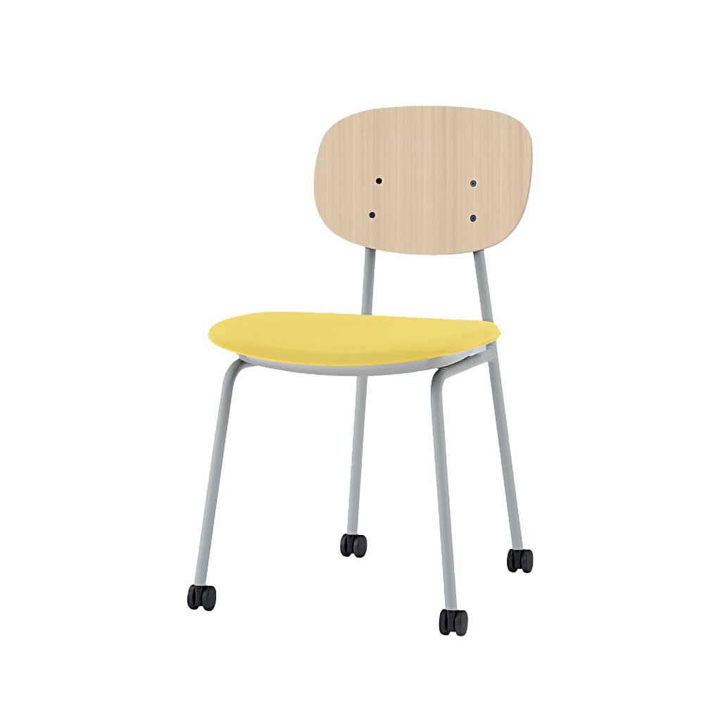 チェアらしいフォルムを活かしながら収納にも対応 目的、空間を選ばずに使える、オフィスの新たな定番チェア。 収納効率の良い跳ね上げネスティング。 座面を跳ね上げ、簡単に効率よく収納することができます(160mmピッチ)。
