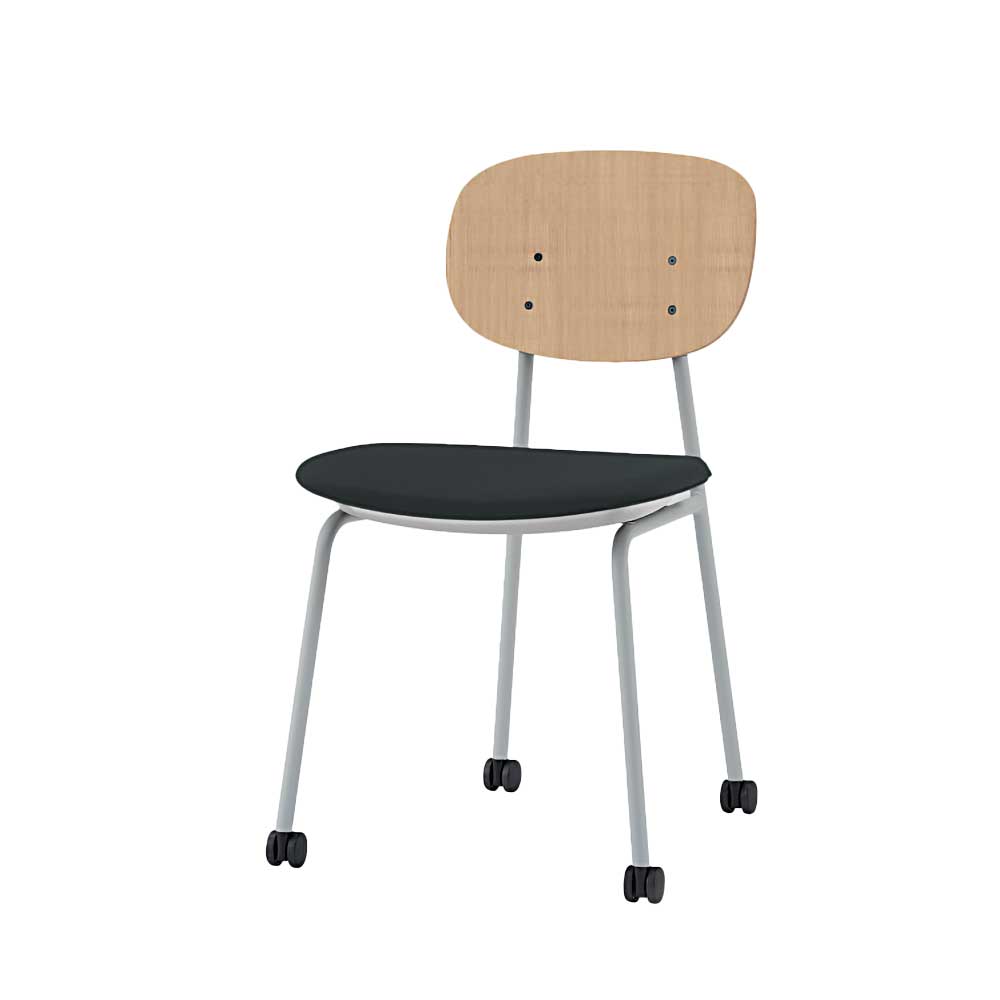 チェアらしいフォルムを活かしながら収納にも対応 目的、空間を選ばずに使える、オフィスの新たな定番チェア。 収納効率の良い跳ね上げネスティング。 座面を跳ね上げ、簡単に効率よく収納することができます(160mmピッチ)。