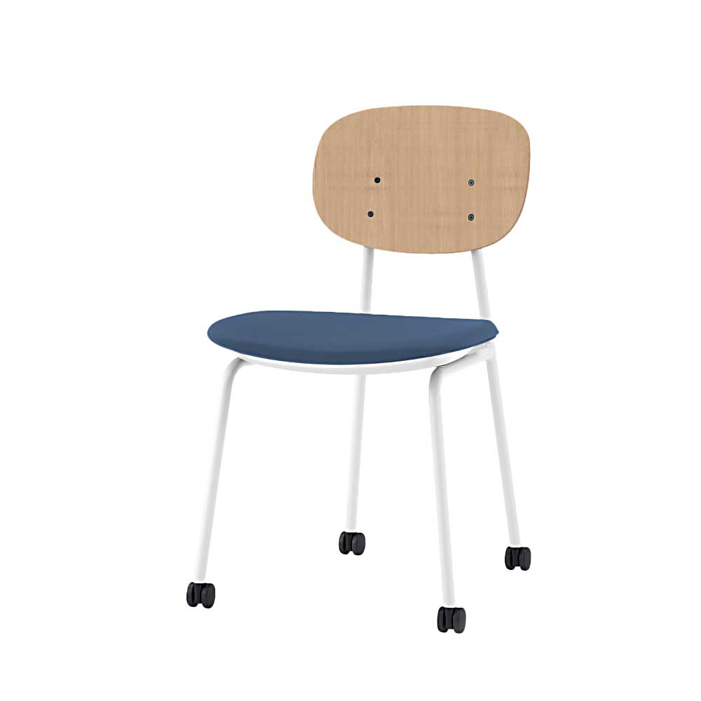 チェアらしいフォルムを活かしながら収納にも対応 目的、空間を選ばずに使える、オフィスの新たな定番チェア。 収納効率の良い跳ね上げネスティング。 座面を跳ね上げ、簡単に効率よく収納することができます(160mmピッチ)。