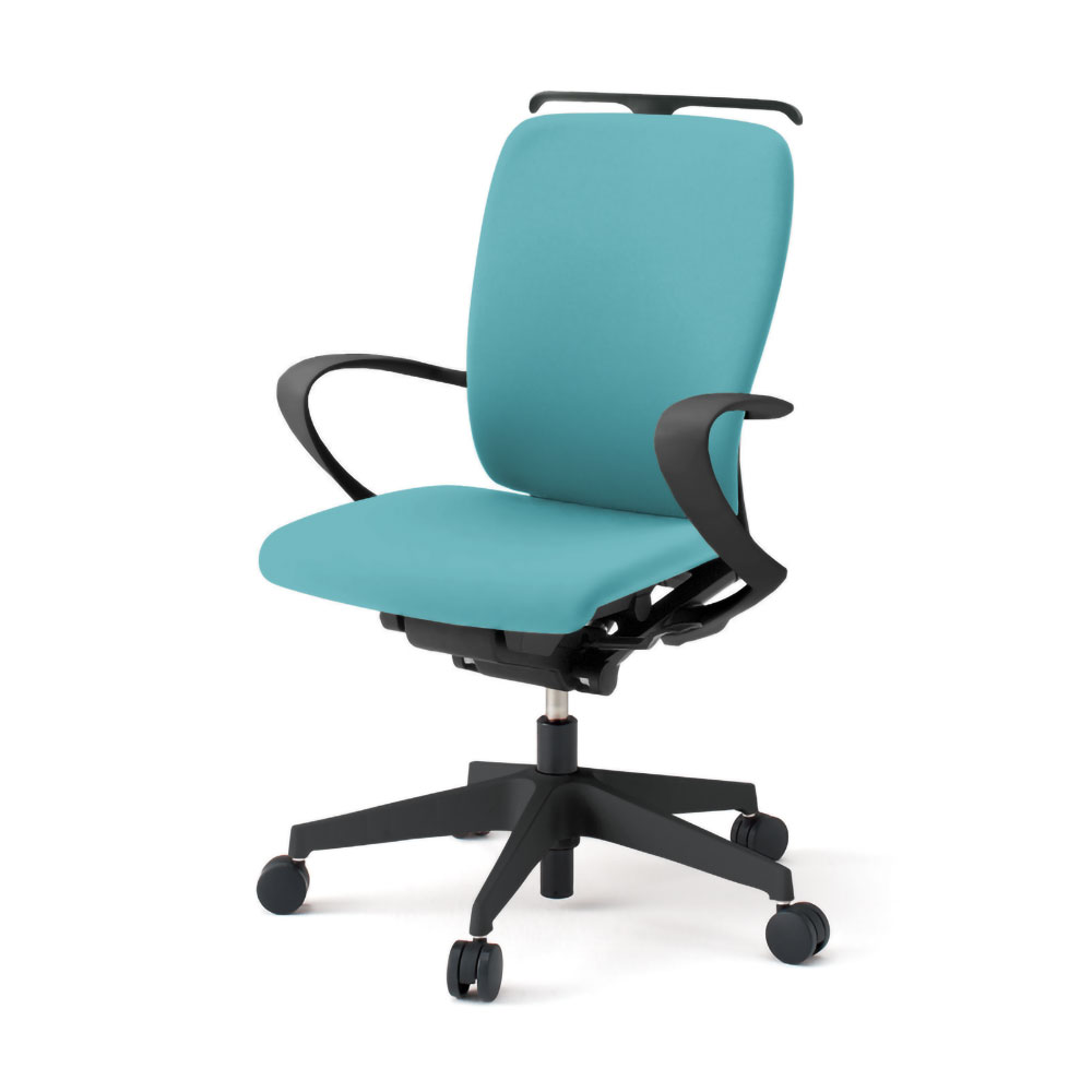 フルゴチェア KF-436DLHT1S4 ハイバック ビニールレザー張り 固定肘 ハンガー [ ベース : ブラックT / 張地 : ターコイズブルー] ( ナイロン双輪キャスター )