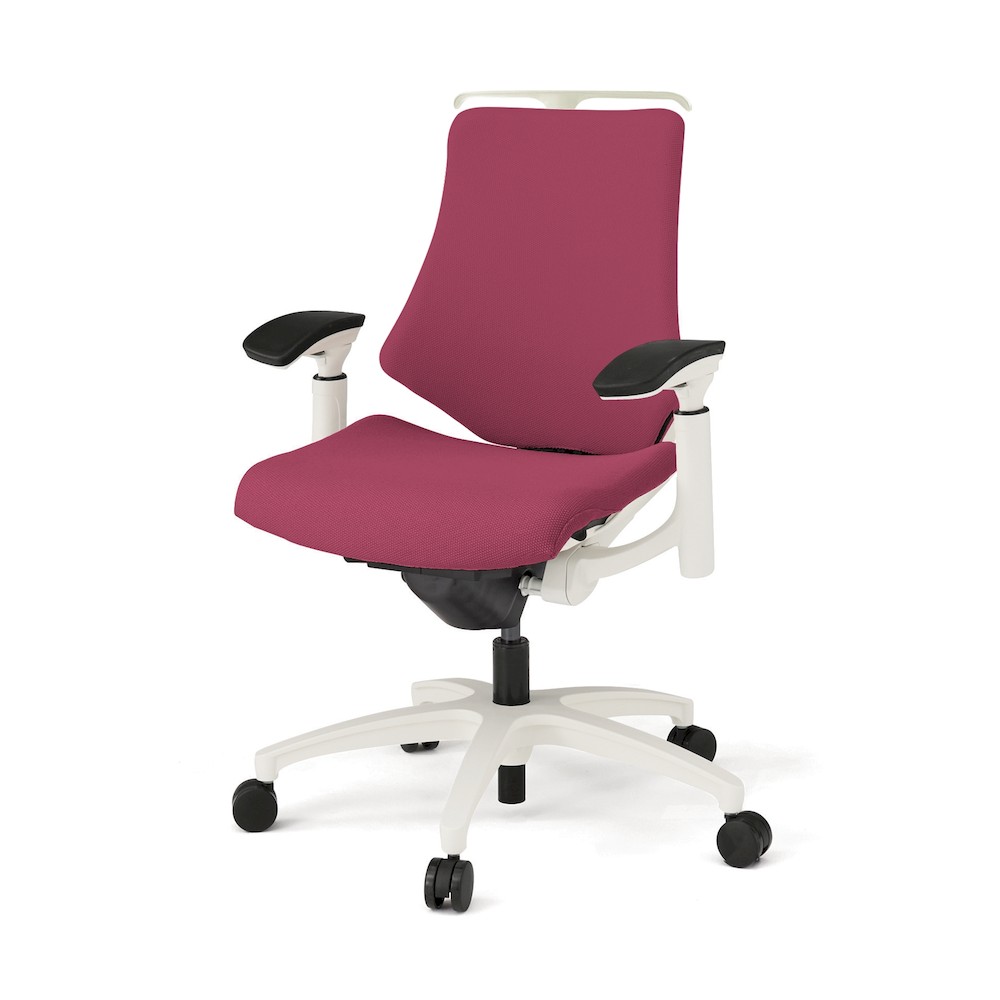 エフチェア KG-147PSH-W9M4 ローバック 可動肘 ハンガー付 樹脂脚 ナイロン双輪キャスター [W9×M4/ラズベリーレッドレッド]
