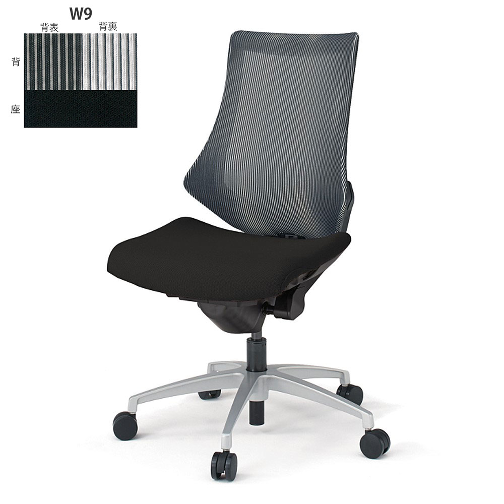 エフチェア KG-170JA1ZTW9 ストライプレイヤーファブリック ハイバック 肘なし シルバーメタリック脚 ナイロン双輪キャスター [W9/ホワイトW]