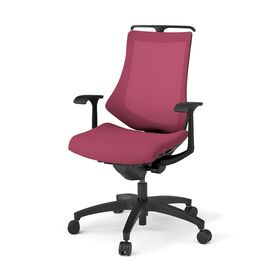 エフチェア KG175JVHM-T1M4 プレーンメッシュ ハイバック 固定肘 ハンガー付 樹脂脚 抵抗付ウレタン双輪キャスター [T1×M4/ラズベリーレッド]