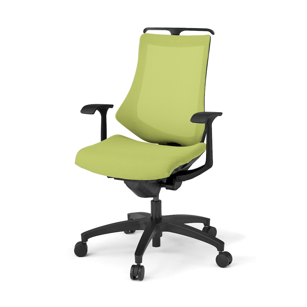 エフチェア KG175JVHM-T1Q6 プレーンメッシュ ハイバック 固定肘 ハンガー付 樹脂脚 抵抗付ウレタン双輪キャスター [T1×Q6/モスグリーン]