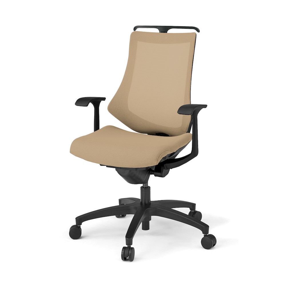 エフチェア KG175JVHM-T1Y3 プレーンメッシュ ハイバック 固定肘 ハンガー付 樹脂脚 抵抗付ウレタン双輪キャスター [T1×Y3/サンドイエロー]