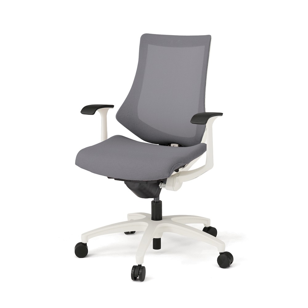 エフチェア KG175JVM-W9W6 プレーンメッシュ ハイバック 固定肘 抵抗付ウレタン双輪キャスター [W9×W6/ライトグレーW]