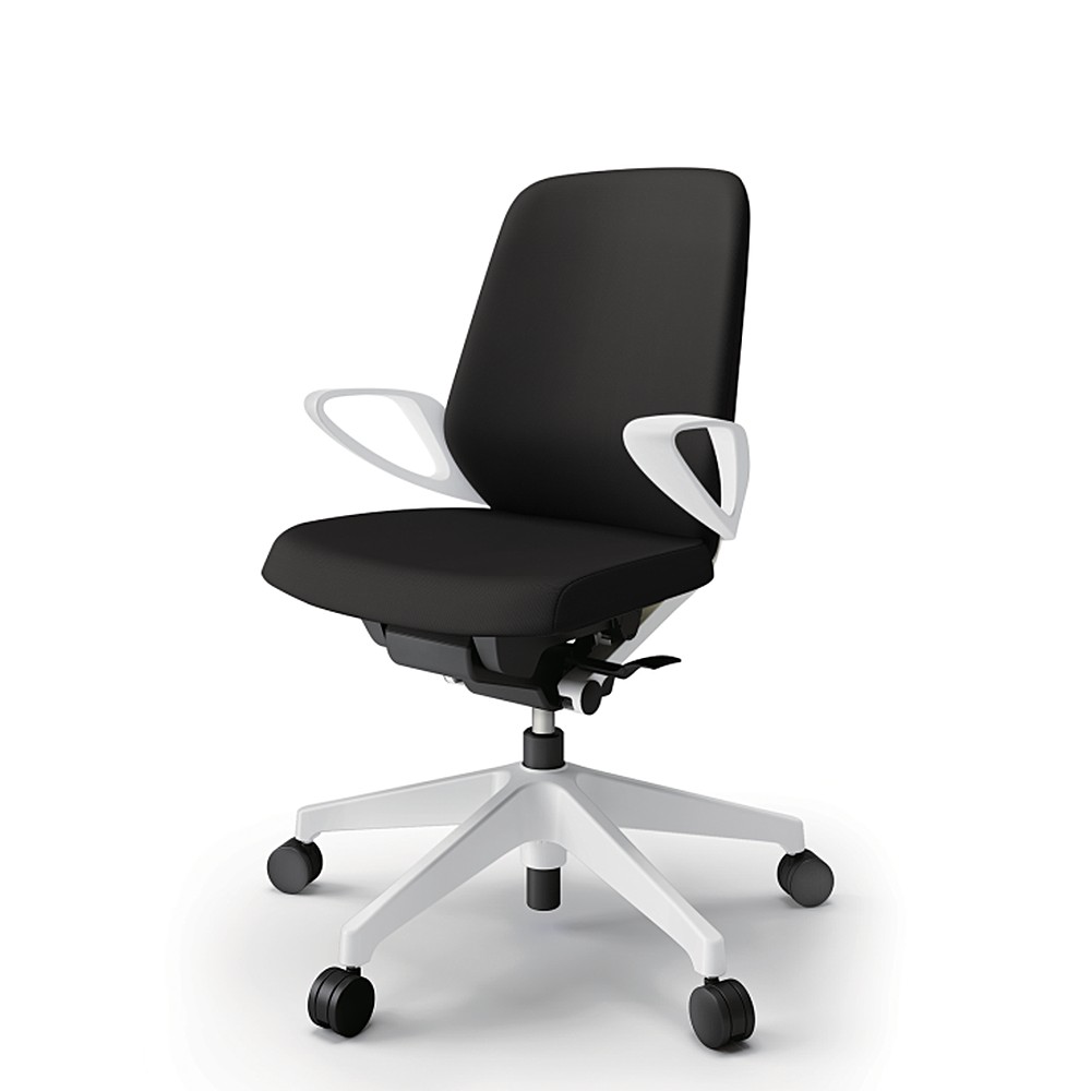ノートチェア KJ-126PV-W9T1 ローバック / 樹脂脚 / ループ肘 / ランバーサポート / 抗ウイルス加工布地 プレーンクロスバック ナイロン双輪キャスター [W9×ブラックT]