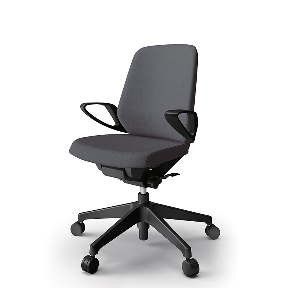 ノートチェア KJ-126SAM-T1T3 ローバック 樹脂脚 ループ肘 ランバーサポート付 テクスチャードクロス[T1T3] 抵抗付ウレタン双輪キャスター