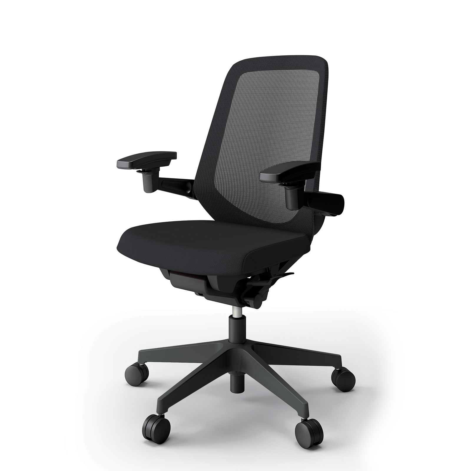 ノートチェア KJ-157JV2T1T1 ハイバック 樹脂脚 アジャスタブル肘 ランバーサポート付 抗ウイルス加工 プレーンメッシュバック ナイロン双輪キャスター [T1×ブラックT]