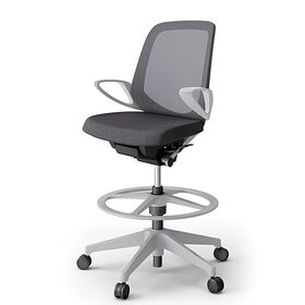 ノートチェア ハイポジションタイプ KJ-166JEP-GNT3 ローバック / 樹脂脚 / ループ肘 / ランバーサポート / テクスチャードメッシュ 抵抗ウレタン双輪キャスター [GN×ダークグレーT]