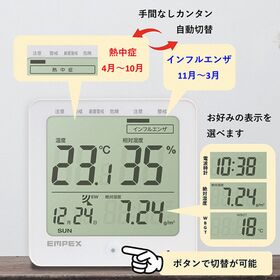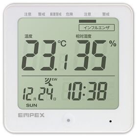 サンワサプライ 熱中症&インフルエンザ表示付デジタル温湿度計 警告ブザー設定機能付...