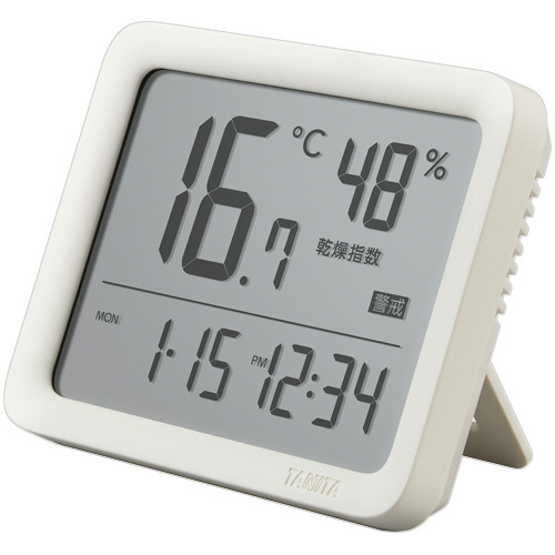 熱中症・季節性インフルエンザになりやすい室内環境を知らせる温湿度計。