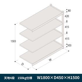 棚段替えがいつでも簡単にできる、高耐荷重のラック。大きさ違いのかさばる中軽量品を合理的に保管します。無駄のないシンプルなデザインとシックなカラーで、空間を明るくさわやかに演出します。 棚板の最大積載質量150kg仕様と200kg仕様の2種類をご用意しておりますので、用途に応じてお好みのタイプをお選びください。