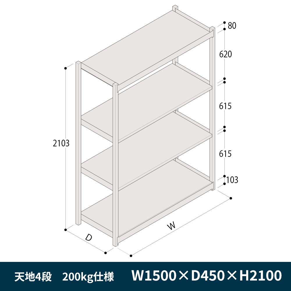 棚段替えがいつでも簡単にできる、高耐荷重のラック。大きさ違いのかさばる中軽量品を合理的に保管します。無駄のないシンプルなデザインとシックなカラーで、空間を明るくさわやかに演出します。 棚板の最大積載質量150kg仕様と200kg仕様の2種類をご用意しておりますので、用途に応じてお好みのタイプをお選びください。