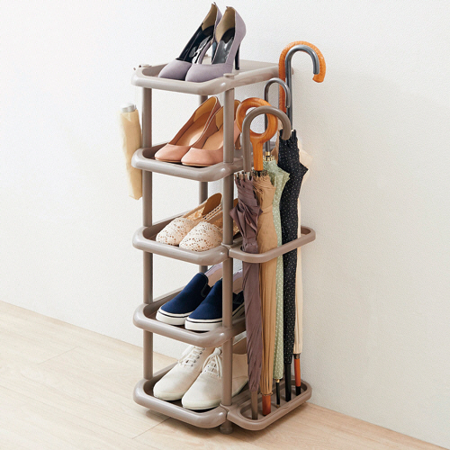 ●5段のシューズストレージ、色はブラウンです。