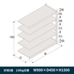 軽中量ボルトレス棚 RL開放型 150kg仕様 ERL-163341-W7 W900×D300×H1800mm 天地4段 単体 [W7/ホワイトグレー]