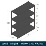 軽中量ボルトレス棚 RL開放型 150kg仕様 ERL-163341-T1 W900×D300×H1800mm 天地4段 単体 [T1/ブラック]