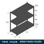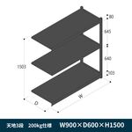 軽中量ボルトレス棚 RL開放型 200kg仕様 ERL-M153630-T1 W900×D600×H1500mm 天地3段 連増 [T1/ブラック]