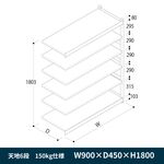 軽中量ボルトレス棚 RL開放型 150kg仕様 ERL-163460-W9 W900×D450×H1800mm 天地6段 連増 [W9/ホワイト]