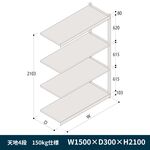 軽中量ボルトレス棚 RL開放型 150kg仕様 ERL-175340-W9 W1500×D300×H2100mm 天地4段 連増 [W9/ホワイト]