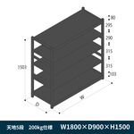 軽中量ボルトレス棚 RL開放型 200kg仕様 ERL-M156950-T1 W1800×D900×H1500mm 天地5段 連増 [T1/ブラック]