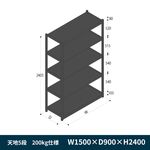軽中量ボルトレス棚 RL開放型 200kg仕様 ERL-M185951-T1 W1500×D900×H2400mm 天地5段 単体 [T1/ブラック]
