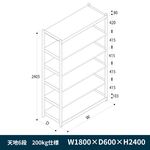 軽中量ボルトレス棚 RL開放型 200kg仕様 ERL-M186661-T1 W1800×D600×H2400mm 天地6段 単体 [T1/ブラック]