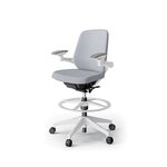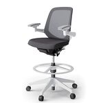ノートチェア ハイポジションタイプ KJ-167JEP2W9T7 ローバック / 樹脂脚 / アジャスタブル肘 / ランバーサポート / テクスチャードメッシュ 抵抗ウレタン双輪キャスター [W9×ホワイトグレーT]