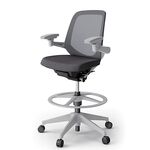 ノートチェア ハイポジションタイプ KJ-167JEP2W9T3 ローバック / 樹脂脚 / アジャスタブル肘 / ランバーサポート / テクスチャードメッシュ 抵抗ウレタン双輪キャスター [W9×ダークグレーT]