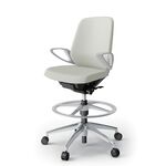 ノートチェア KJ-146DLP-ZNC8 ビニールレザー ハイポジションタイプ ローバック 固定肘(ループ肘) アルミ脚 抵抗付ウレタン双輪キャスター [ZNC8/オフホワイト]