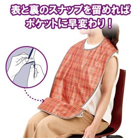 ●裾はスナップボタンを留めるとポケット状になり、食べこぼしをキャッチします。