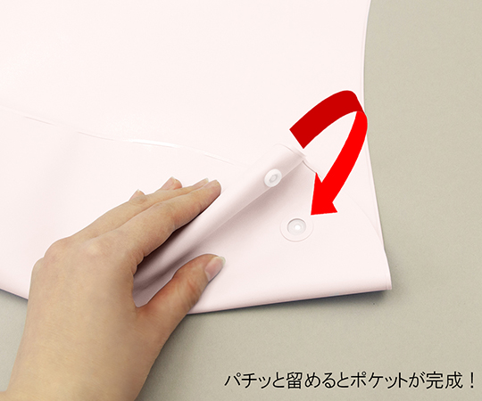 ●エプロン部のスナップを留めるとポケットになり、食べこぼしをキャッチできます。
