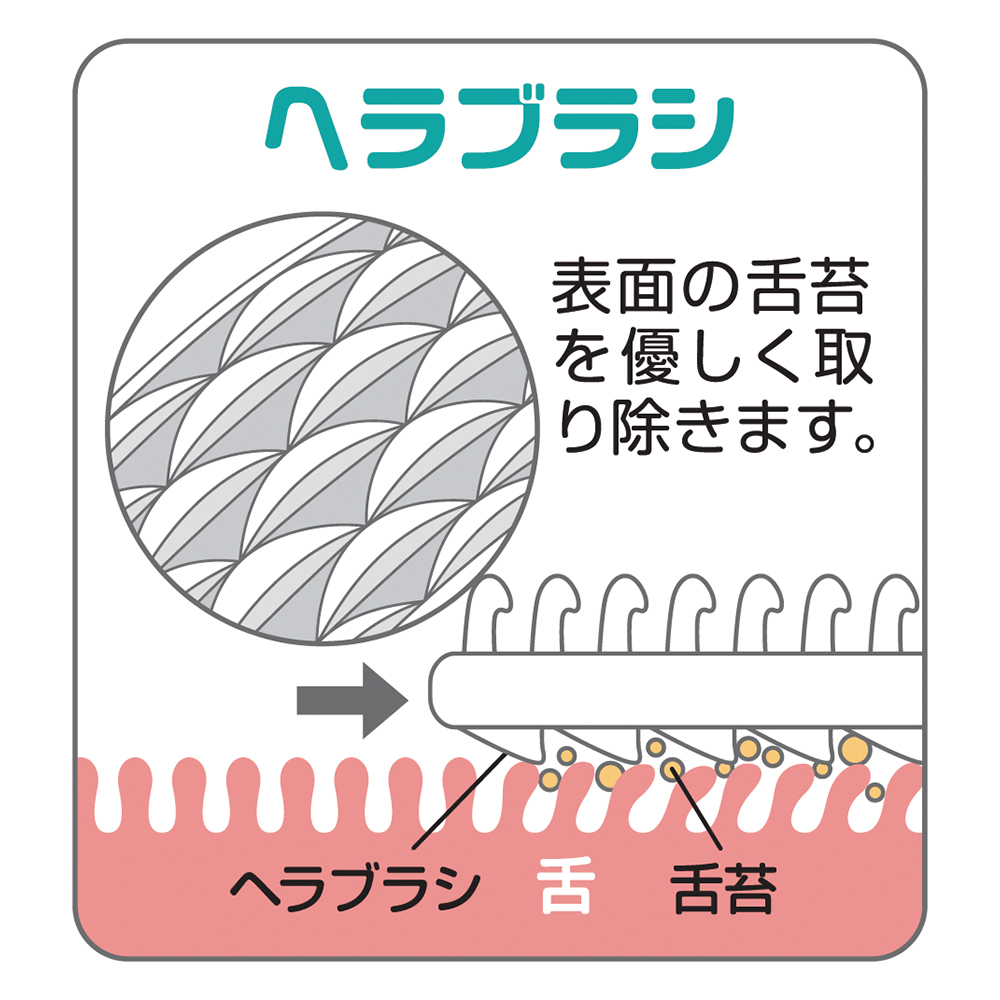 ●柔らかい合成樹脂製ブラシが弓状に曲がり、舌に優しくフィットします。
