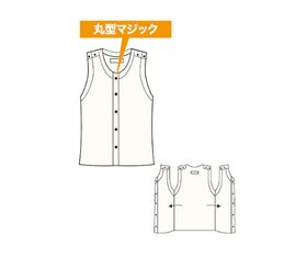 ●両肩と前合わせあわせが丸型マジックどめ。