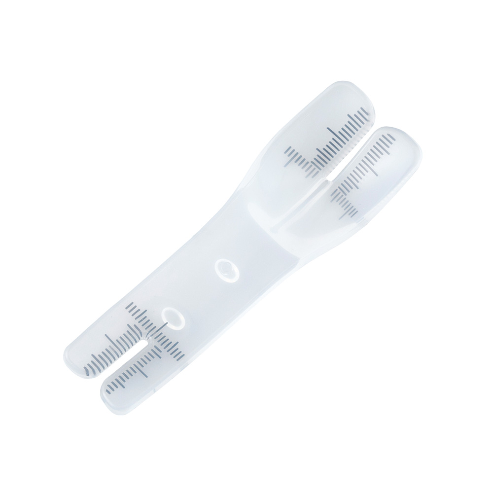 ●二股に分かれた部分で舌小帯または上唇小帯を挟み込んで挙上すると小帯が明示され、印刷されたスケールで奥行・幅の採寸が可能です。