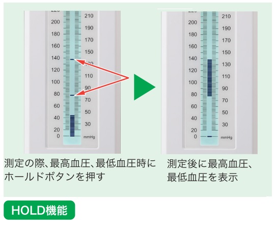 ●最高血圧と最低血圧をホールドボタンを押すことで保持できます。