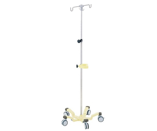 ●2本架タイプには折りたたみできるセンターフック付きで、大きな輸液バッグを掛けても安定します。