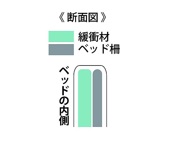 ●サイドレールから腕や脚がはみ出るのを防ぎつつ、ぶつけた時の衝撃を緩和する緩衝材入り(ベッドの内側)です。