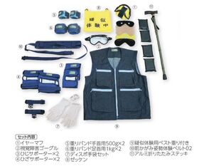 ●基本セットに加えて前かがみ体験ベルト、疑似体験ベストやステッキを追加した充実のセットです。
