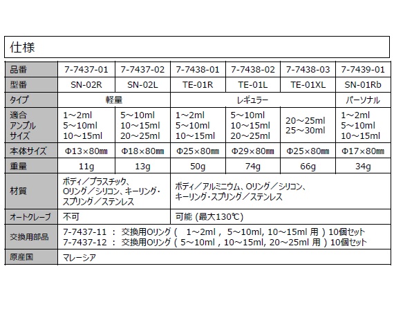 ●適合アンプルサイズ1~2mL・5~10mL・10~15mL