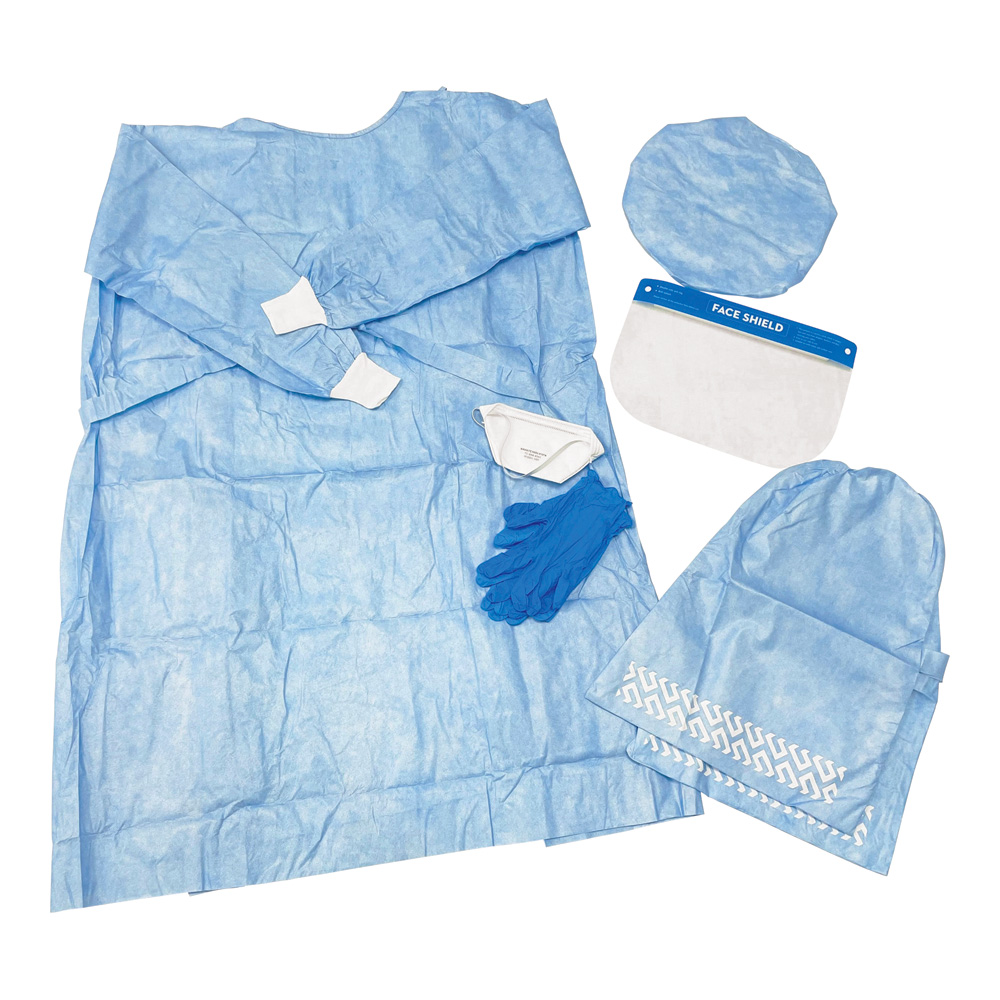●セット内容:ガウン×1枚、キャップ×1枚、ブーツカバー×1足、手袋×4枚、フェイスシールド×1個、N95マスク×1個