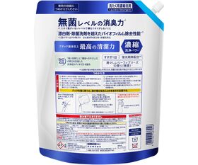 ●成分:界面活性剤47%【高級アルコール系(非イオン),高級アルコール系(陰イオン)、ヒドロキシアルカンスルホン酸塩】、安定化剤、抗菌剤、消臭助剤、酵素