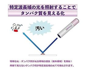●普段目に見えないタンパク質汚れが一目でわかるので汚れを見逃さず、掃除後はキレイが一目瞭然です。