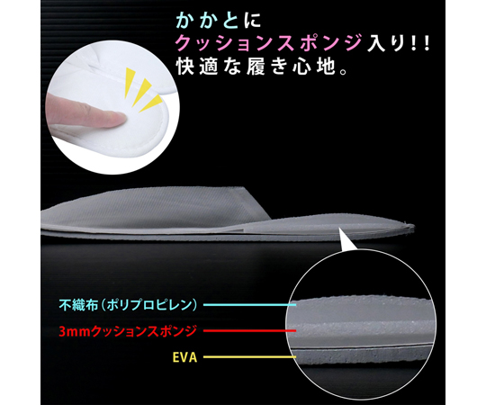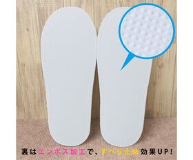 ●従来の使い捨てスリッパより甲高に設計しているので/ゆったり履けます。