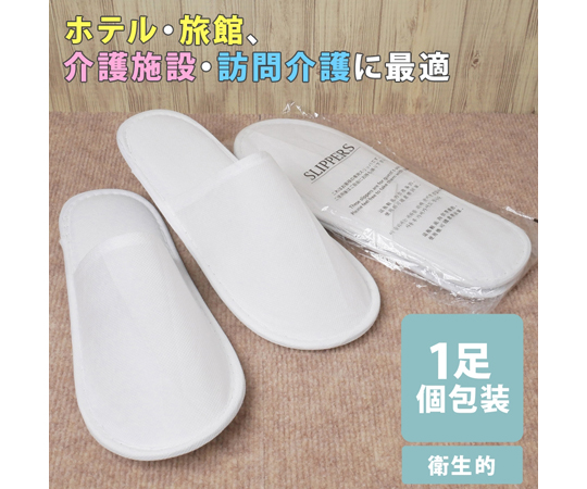 ●1足ずつ個包装されているので衛生的な使い捨てスリッパです。