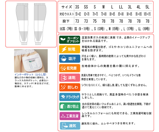 ●静電気の帯電を防ぎ、ゴミやホコリのユニフォームの吸着を防ぎます。